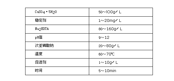 一種典型的使用次亞磷酸鈉做還原劑的化學鍍銅工藝如下:
