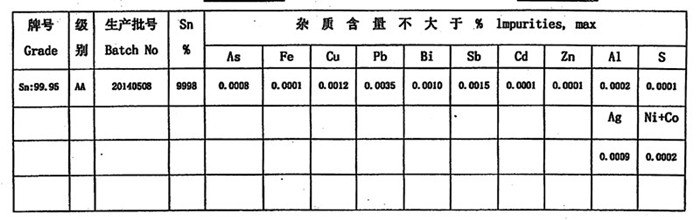 主要用途:依客戶要求定做規(guī)格,主要用于硫酸鹽和甲基磺酸鹽鍍錫,由錫錠鑄造,品質(zhì)可靠。